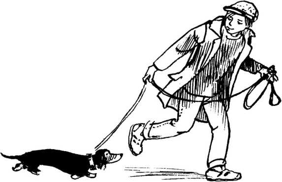 Таксу звали Лаптем. Коста вышел, держа собаку под мышкой. И вскоре они уже шагали по тротуару. Рядом с сапогами, ботинками, туфлями на кривых ножках семенил черный Лапоть.