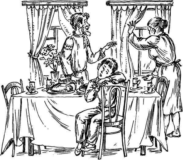 Вот папа возвращается в комнату и тотчас говорит мне: «Дениска, обедать! Ступай руки мыть!»