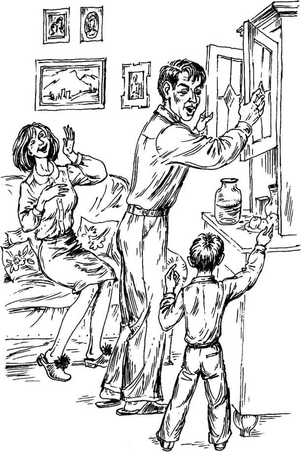Папа побежал к буфету и распахнул дверцу. Потом он заморгал глазами и стал растирать себе грудь. Он смотрел на меня с таким удивлением, будто я был не обыкновенный мальчик, а какой-нибудь синенький или в крапинку. Я сказал: