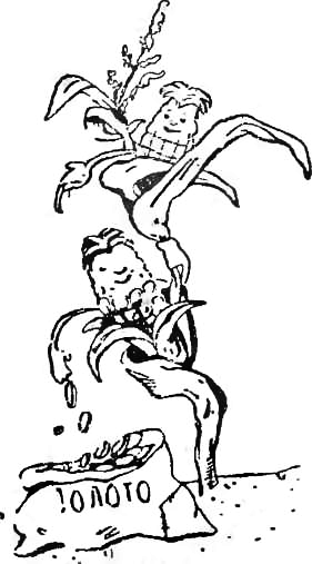Но есть ли смысл сжигать тонны кукурузного зерна, чтобы получить считанные доли грамма золота? Нет, конечно. Кукуруза сама – золото! В Америке, где ее впервые оценили по достоинству, ежегодно запасы зерна на складах увеличиваются на большое количество тонн. Стоимость годового урожая кукурузы, добранной в США, не уступает по цене всем золотым запасам, лежащим в сейфах этой страны. Разница только в том, что хищники Америки собирали это золото многие десятки лет, а кукуруза дает урожай такой же стоимости Каждый год и без кровопролитий, без человеческих страданий, с которыми неизбежно связано накопление золота в капиталистическом мире.