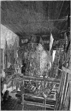 В одной из башен монастырской стены, называемой Успенской, помещается очень любопытный арсенал или оружейная палата монастыря, с большим количеством деревянных стрел, копий, алебард, бердышей, кольчуг, пищалей и пушек. Посещающий этот арсенал, вспоминает исторические факты, в которых монастырская жизнь принимала военную окраску. Этими бердышами и алебардами вооружались монахи в XV и XVI столетиях против шведов; из этого арсенала взято было оружие во время раскольничьего мятежа в XVII столетии, против царских войск. Когда, в 1854 году, бомбардировали обитель англичане и монастырь вооружался против них, то в арсенале оказалось 20 пушек разного калибра, 381 пика, 648 бердышей, и все это пошло в ход и послужило для вооружения. Главный начальник края поручил тогда одному из офицеров, Бруннеру, осмотреть побережье Белого моря и Мурмана, строить и вооружать батареи, но только местными средствами. Таким образом, при помощи монахов и богомольцев, построено было несколько батарей и в Соловках; для защиты скотного двора на Муксалме, на который зарились англичане, устроено было для действий против десанта нечто вроде конной артиллерии в три орудия, ездовыми которой были богомольцы, прислужники, а командование поручено монаху, бывшему фейерверкеру; командир этот, в монашеской одежде, командовал молодецки. Орудия из-за монастырской стены глядели грозно, но взяты они были с бору да с сосенки. Одна пушка, отлитая при царе Алексее Михайловиче, найдена была в бане, где заменяла каменку для получения пара; в других орудиях была масса свищей и раковин; пришлось просверливать стволы. Вооружению монастыря помогало: отставной коллежский асессор Соколов и отставной гвардии унтер-офицер Крылов. Следы бомбардировки имеются налицо в грудах бомб и ядер, в знаках на стенах и на иконах. Стреляли англичане плохо; лесистые островок заслонял монастырь, и большая часть бомб перелетала через монастырь и ложилась за ним в Святое озеро. В этом озере летние богомольцы считают долгом своим искупаться. В память бомбардировки монастыря, в 1854 году, сооружены были три пирамиды из неприятельских снарядов.