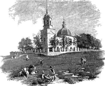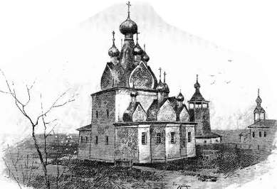 Часов около восьми вечера показался город Мезень, медленно выдвигавшийся влево. Он стоить на правом берегу и ясно виден верхушками своих двух церквей.