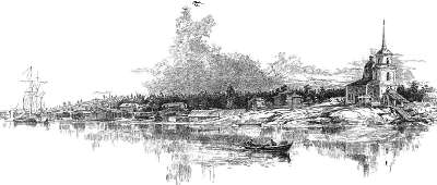 Когда пароход тронулся дальше, над Белым озером опускался светлый, летний вечер; путь продолжался по тому же каналу, но освещение уже было другое; тот же народ, те же бесконечные вереницы судов, покачивавших свои мачты, то же набегание волны на низкие берега и та же близость деревьев, ветви которых изредка хлестали по правому кожуху. По мере движения вперед, пароход удалялся от мест, освященных преподобным Кириллом, и близился к тем местам, где на каждом шагу должна была возникать память Петра I.