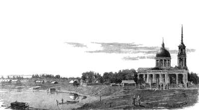 К девяти часам вечера пароход вошел в реку Волхов, и на пристань Новой Ладоги, на левый берег, брошены были причалы с парохода. На берегу, как и везде, множество народа. Весьма любопытен по своей архитектуре местный собор. Чудотворная икона Св. Николая вделана почему-то в наружную стену собора на очень значительной высоте, так что снизу ничего не видно; этому необыкновенному помещению иконы должна быть своя историческая причина, разъяснение которой весьма желательно. В самом храме несколько очень древних икон XIV, XV и XVI столетий. По надписям на двух из них видно, что они сооружены в первых годах XVI века. Церковь на этом месте существует с незапамятных времен, так как об урочище Медведке, от которого получил свое имя здесь стоявший монастырь Медведский, упоминается в договорных грамотах очень рано. Это урочище Медведка, которому теперь нет и следов, было крайним пунктом старинных владений Новгородских на восток.