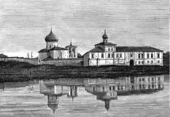 Едва отошел пароход от пристани и отодвинулись святыни кремля, как открылось вправо устье реки Псковы: древние стены, сбегая к ней с обеих сторон по кручам, раздались, чтобы дать реке место; теперь река эта открыта, а во время оно преграждался вход в нее могучими решетками. Влево от парохода, при самом выезде из города, виднелся Ивановский монастырь, а скоро вслед затем на правом высоком берегу Великой, в белых стенах своих, с маленькими куполами, часовенками, очень высокой колокольней и многими, не вполне симметричными, окнами, глянул монастырь Снетогорский, летнее местопребывание, дача архиерея. В этом монастыре, гласит псковская летопись под 1299 годом, убиты немецкими рыцарями игумен Иоасаф с 17 братьями; тут же, в 1472 году, слушала молебен и переодевалась для торжественного вступления в Псков Софья Фоминична Палеолог.