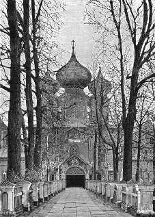 Живописно и неподвижно стояли толпы народные у ворот монастырских, в ожидании начала богослужения. В воротах, над которыми помещается небольшая церковь Вознесения, времен царя Федора Иоанновича, на входивших смотрели во множестве лики угодников Божиих, а из глубины двора монастырского, в конце густо оттененной аллеи, стояли открытыми врата главного храма Успения. Справа и слева, из-за ограды высились памятники богатого кладбища в, где только можно было людям вскарабкаться повыше, чтобы лучше рассмотреть, везде виднелись непокрытые головы и творились крестные знамения. Сквозь паперть церковную, огибающую храм Успения с западной и южной стороны, украшенную потемневшими изображениями из Апокалипсиса и другими, путники проследовали в собор. Вправо от входа, подле массивного столба, виднелась главная святыня монастырская – лик Богоматери Тихвинской, озаренный солнечным светом и множеством огней; к празднику этой иконы, чтимой во всей Руси, и к поклонению ей, именно в этот день прибыл сюда народ. Чтобы напомнить значение Тихвинской святыни, прежде описания посещений и осмотров, следует обратиться к давно прошедшему времени и восстановить, хотя вкратце, основные черты её возникновения и истории, тесно связанные с бытием русской державы, от далеких и мрачных дней. Только вслед за таким напоминанием одухотворятся в полном значении твердыни монастырские, и понятно станет всероссийское её почитание.