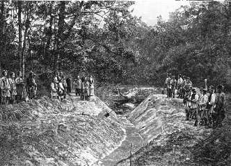 Молебен в лесу при начале прорытия канала. Экспедиция генерала Жилинского. Осушение болот в Минской губ.