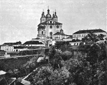 Переезд от вокзала в местный собор весьма продолжителен, так как он высится на другом берегу Днепра, и экипаж только минут через двадцать после остановки поезда быстро въехал по красивой Благовещенской улице на крутую соборную гору, в узкие ворота стен, по изломанному проезду, свидетельствующему этим самым о том, что возникли эти стены и этот проезд давно; возникли не по заранее установленному плану, а так – как возникали все наши древние твердыни, как Бог послал.