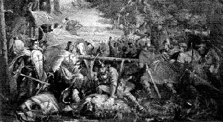 К ландмейстерским знаменам собрались рыцари из Пруссии, Лифляндии, Эстляндии, Курляндии. собрались и другие охочие крестоносцы и повели с собой, в качестве вспомогательного войска, – порабощенных ими куронов, которых в настоящее время нет и следа, так основательно счищены они с лица земли. Воинская сила собралась могущественная, и весь цвет рыцарства находился налицо. Дикари-мятежники расположились пестрыми полчищами близ дурбенского замка, одноименного с ним озера и окаймляющих его болот. Болота расстилались в те дни так широко, что на военном совете рыцарей тотчас же возник вопрос: не лучше ли им спешиться и привязать коней где-либо за боевой линией? Большинство рыцарей высказалось против этого, обидного для их гордости, маневра, равно как и против того, чтобы удовлетворить очень справедливому желанию куронов, помогавших им, получить обратно, в случае победы, своих жен и детей, захваченных неприятелем и находившихся в его лагере. Рыцари желали, оставаясь верными своим меркантильным обычаям, чтобы куроны, их союзники, «выкупили» у них этих жен и детей, которые еще не были отобраны, а только имели быть отобранными! Не трудно, казалось бы, предвидеть будущее; но рыцарей, как говорится, Бог попутал, а куроны вошли в тайное соглашение с неприятелем и поняли очень хорошо, что значить стоять в тылу своих собственных войск.
