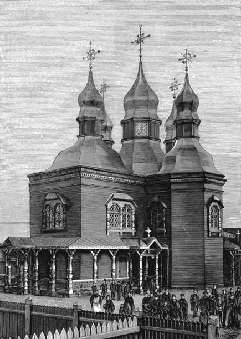 Прослушав молитвословие во временной церкви, приложившись к кресту и чудотворной иконе Якобштадтской Божией Матери, очень небольшой, вделанной в иконостас, путешественники прошли немедленно к воздвигавшейся в описываемое время заново Свято-Духовской церкви. Фундамент был готов весь; стены подняты более чем в рост человека; кладка каменная, хорошая. Весь храм не особенно велик, и так как его воссоздали по образцу сгоревшего, то фотографии, снятые с его предшественника, так безвременно погибшего, дают полное понятие о том, чем он был. Вслед за строящимся храмом путешественники посетили одноклассную с двумя отделениями школу, число учеников которой в зимнее время достигает 150 мальчиков и девочек.