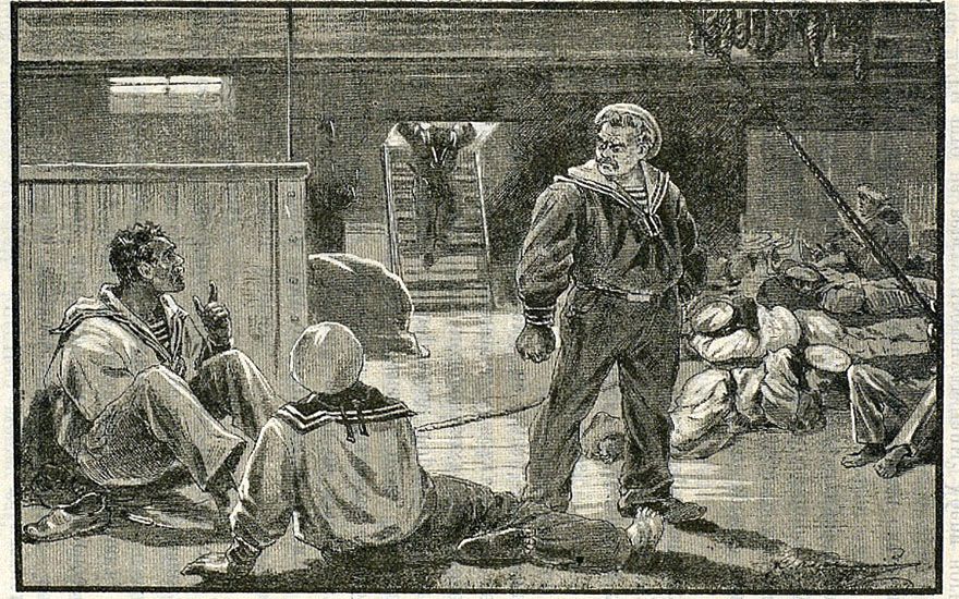 Утренние работы окончены. Одиннадцатый час на исходе – скоро обедать. В ожидании приятного свиста дудок, призывающих к водке, матросы высыпали на палубу и толпятся на баке[15]15