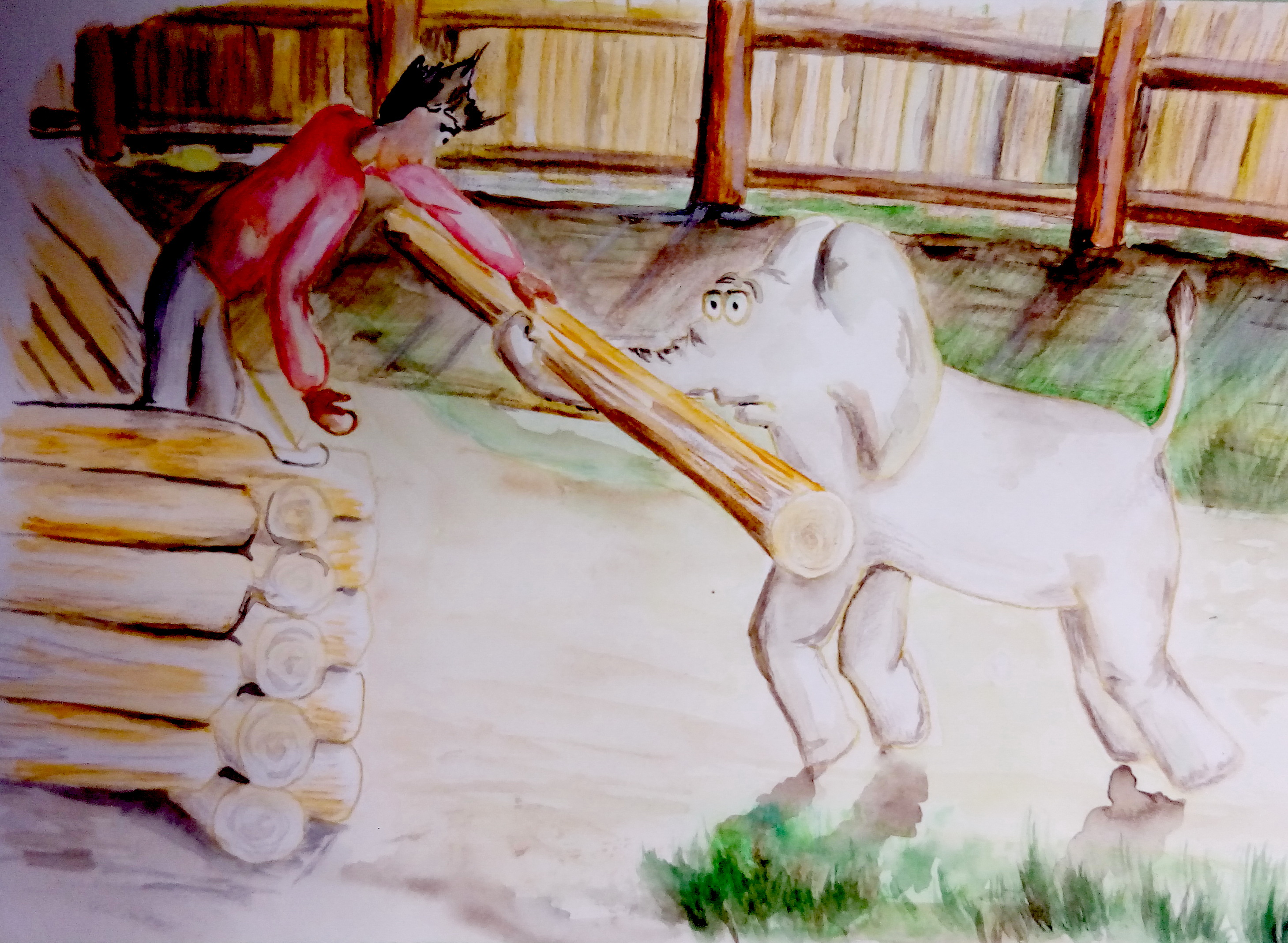 Пожалел слона и сразу я забрал его домой.