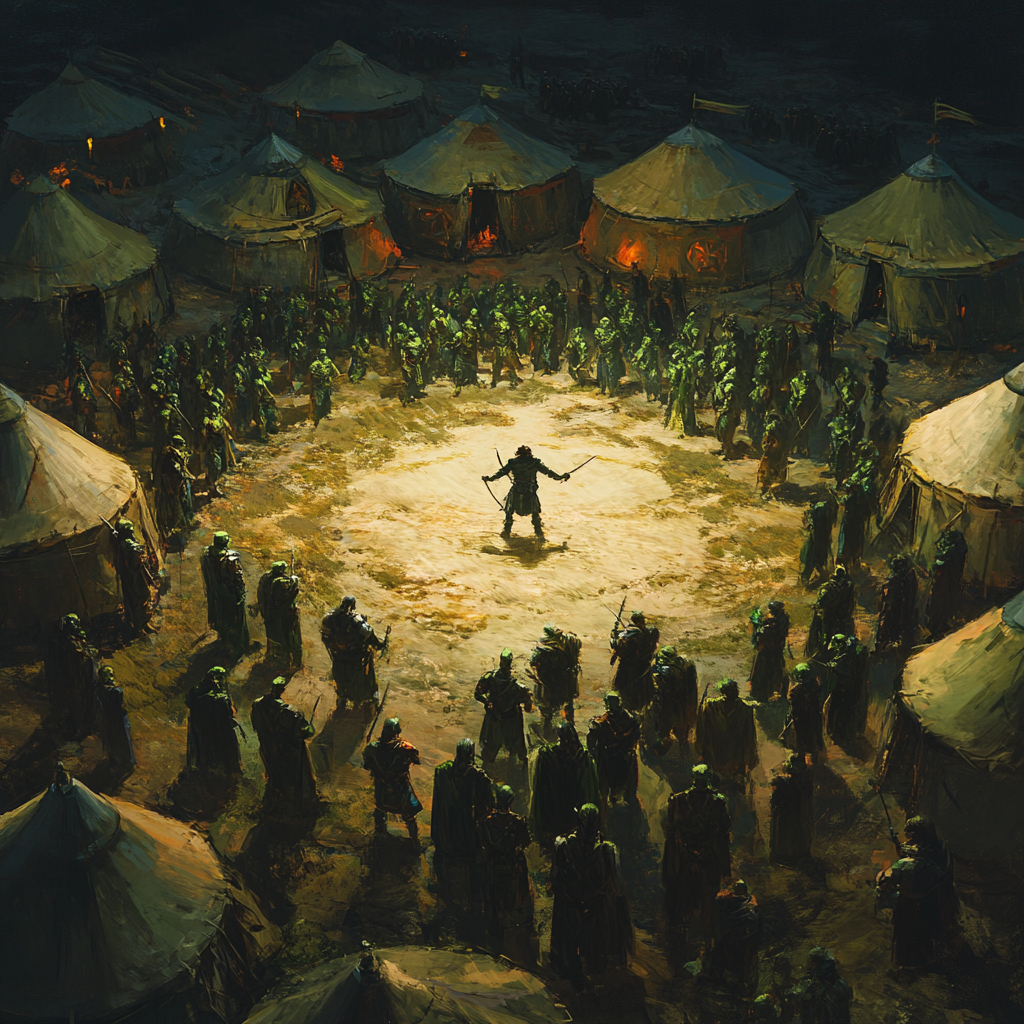 И вот, после очередного дня пути, Артём увидел вдали частокол. За ним явно кипела жизнь: дым от тамошних костров, словно маяк, возвышался над ровными степями. Приблизившись ещё ближе, Артём увидел стада пасущихся лошадей где-то поодаль – целый табун, за которым присматривала пара орков.