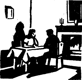 В столовой у жарко пылавшего камина, засучив рукава полосатой фланелевой кофточки и повязав вокруг талии полотенце, хлопотала девушка. На огне стояла синяя кастрюлька с закопчённым боком. В ней булькало и клокотало, из-под крышки вырывался пар: там варился картофель. Девушка раскраснелась и казалась воплощением тепла и жизни.