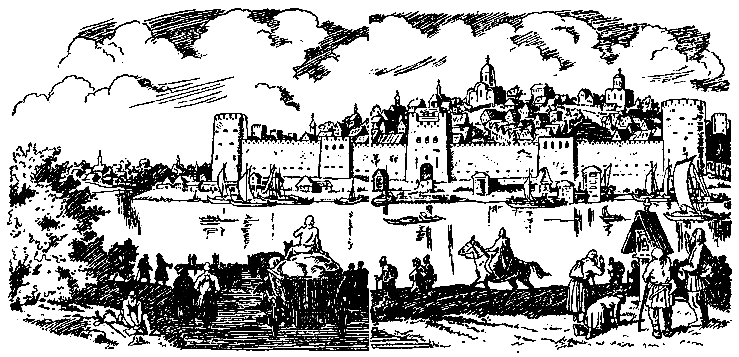 Белокаменные кремлевские стены нависали над головой, давили своей громадой. У самой воды дымились высокие бревенчатые бани, толпился праздный народ, кричали разносчики, торговавшие горячим сбитнем и разной снедью. На пристанях люди выгружали с барок еловые и сосновые бревна, сено и березовые дрова.