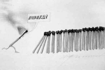 Однажды, когда Эйнштейн гулял по саду, ему на голову упало яблоко. На что он резонно заметил: «Поздно...»