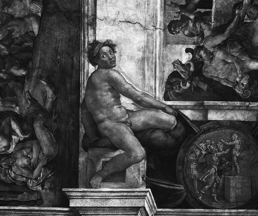 Обнаженная мужская фигура. Микеланджело Буонаротти. Фрагмент свода Сикстинской капеллы, Ватикан