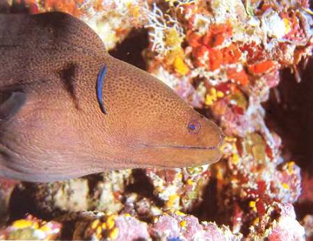 За муренами ухаживают губанчики-чистильщики. Эти мелкие рыбки чистят их, выедая больные участки кожи и отмершие ее частички, уничтожают всех паразитов, обитающих на ее теле, зубах или в жаберной полости. Чистильщики всегда живут на одном месте и «обслуживают» не только мурен, но и других хищников. Мурены не проглатывают чистильщиков, даже если те трудятся у них во рту.
