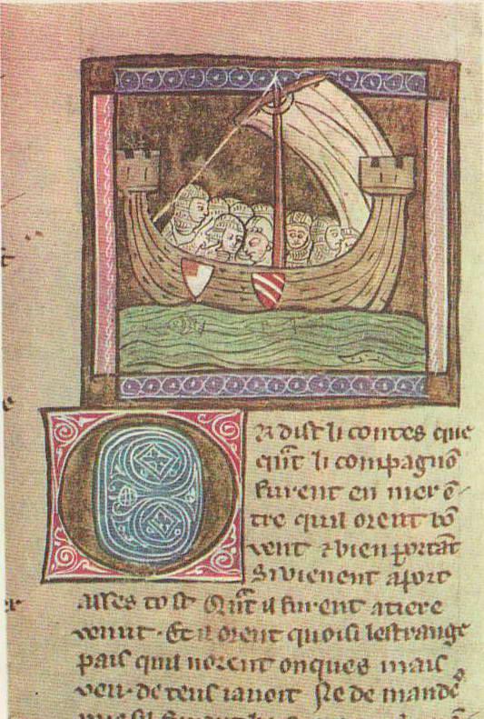 Король стоял у окна и слышал эти звуки; видел он и приставшую к берегу ладью, столь дивно оснащенную, что можно было подумать, будто она приплыла из страны фей. Он указал на нее королеве.