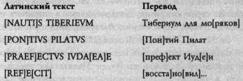 См. Geza Aflody, «Pontius Pilatus und das Tiberieum von Caesarea Maritima», Studia classica hraelica 18 (1999): 85–108.