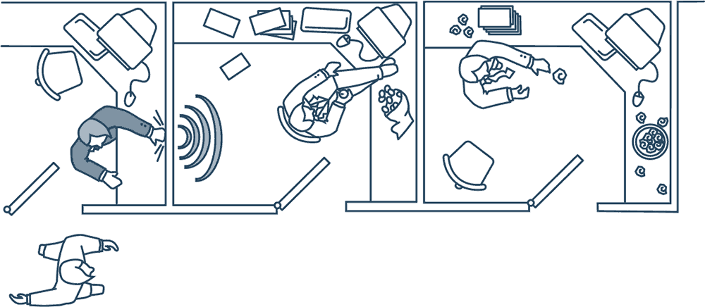 В офисе вы можете установить стандартные аббревиатуры для сообщений, например ВБП («Внимание, Большой Пес»). Чтобы стук был слышен всем, лучше всего стучать достаточно тяжелым металлическим предметом (например, массивным кольцом) по керамической кружке. Звук получится отчетливым и слышным по всему офису. Когда босс уходит домой или в свой кабинет, пошлите сигнал ВЧ («Все чисто»).