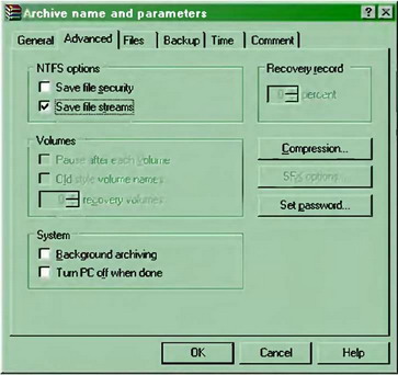 Рис. 6.5. Архиватор RAR способен сохранять файловые потоки в процессе архивации