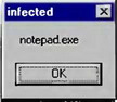 Теперь запустите зараженный файл notepad.exe на исполнение. В доказательство своего существования вирус тут же выбрасывает диалоговое окно (рис. 6.7), а после нажатия на кнопку OK передает управление оригинальному коду программы.