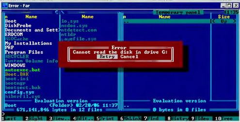 Рис. 7.11. Безуспешная попытка прочитать поврежденный том