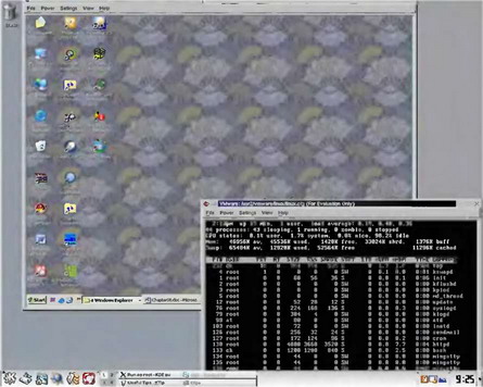 Можно поступить и наоборот. Установить Linux/BSD как базовую систему, a Windows водрузить на виртуальную машину (рис. 8.2). Так как VMWare дает прямой доступ к портам COM, LPT и USB, то подключение сканера, принтера или цифровой камеры к вашей машине перестанет быть проблемой. С этим оборудованием будет работать Windows! Базовая машина UNIX в этом случае получает в свое распоряжение все системные ресурсы, и падения производительности уже не происходит, но появляются другие проблемы. Приложения Windows (например, игры) будут либо сильно тормозить, либо откажутся запускаться совсем, к тому же со всеми остальными типами устройств, например, интегрированной платой WLAN или видеокартой, Windows работать не сможет. А все потому, что VMWare представляет собой "черный ящик", отгороженный от базовой операционной системы толстой стеной эмулятора. Вот если бы существовала возможность предоставить виртуальной машине полный доступ ко всему физическому оборудованию, вот тогда бы... Готовьтесь! Именно такой способ мы и собираемся описать!
