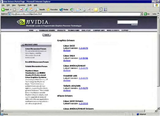 Рис. 8.4. Видеодрайверы для Linux x86 и x86_64 от nVIDIA