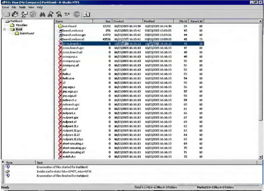 Рис. 8.8. Утилита R-Studio восстанавливает удаленные файлы на разделе ext3fs Имена файлов восстановлены, но нет самих файлов как таковых (их длина равна нулю, так как список блоков прямой адресации затерт)