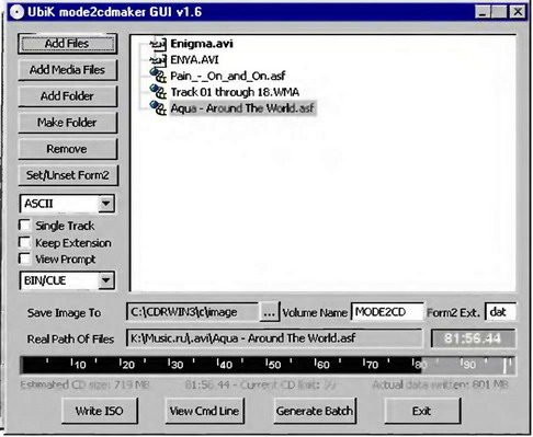 Наконец, когда все приготовления завершены, нажмите кнопку Write ISO, и через некоторое время на диске образуется образ CUE, для прожига которого можно воспользоваться все тем же CDRWin, Alcohol 120% или Clone CD.