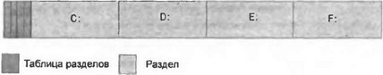 Рис. 5.1. Схематичное представление жесткого диска, разбитого на разделы