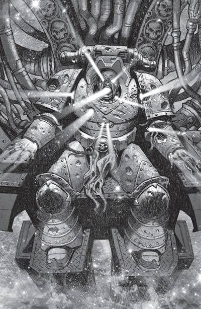 Все вокруг было залито мерцающим светом варпа, поднимавшимся по шахте в небытие. Библиарий ощущал страшный вес якоря, погруженного в рану живой вселенной, и на краткий миг задумался: как такое вообще можно было соорудить. Бывал ли Он здесь? Было ли это создано Им во время долгих лет уединения или же в период военного переполоха первых лет крестового похода?