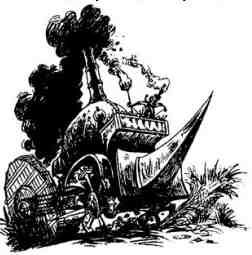 Сквозь слёзы Лоб видел громыхающую впереди адскую машину. Едкий дым не давал ему дышать, но сзади шагал надсмотрщик с хлыстом, и ему ничего не оставалось, как вместе с другими гоблинами подбрасывать в жаркую печь лафовые поленья. Луммель Гроуп, бредущий рядом с братом, оступился и чуть не выронил острую косу.