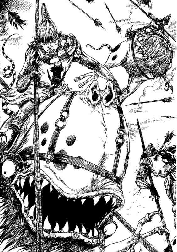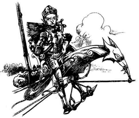 В несколько прыжков Чинквикс достиг металлического монстра, перепрыгнул через него и бросился в гущу гоблиновых войск. Плут приподнялся в седле и стиснул копьё. Стальной наконечник обагрился кровью, а преданный зубоскал уже снова взмыл в воздух.