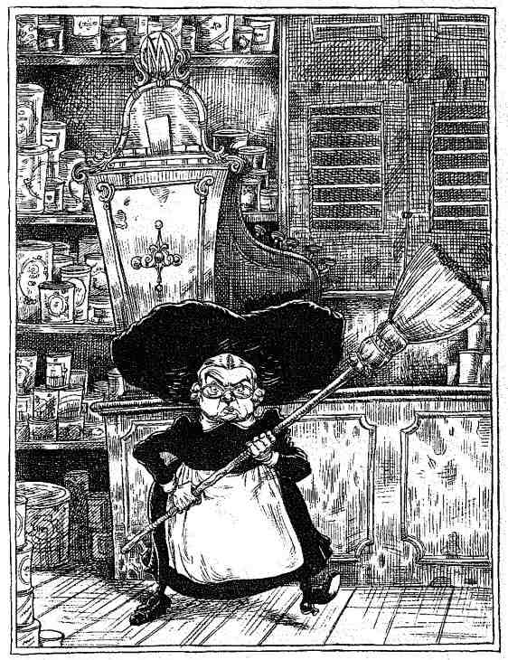 В этот момент дверь позади прилавка открылась, и внутрь магазина прошаркала миниатюрная старушка. На ней было черное платье и гигантский тюрбан. Увидев Корби, старушка тоненько взвизгнула и выскочила за дверь.