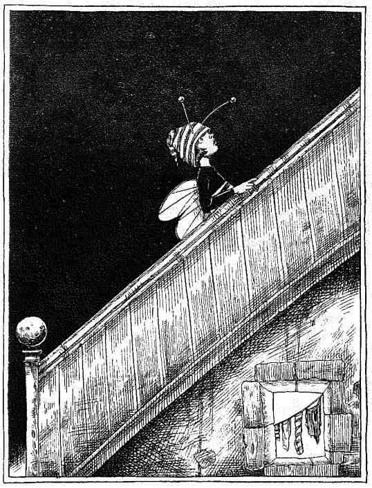 Внезапно в дверь заскочила маленькая старушка с огромной метлой в руках и уже собралась было погнаться за Корби, но двое сыновей остановили ее и принялись объяснять, долго и путано, на языке, которого Корби не понимала, что перед ней вовсе не злая фея, а девочка в костюме пчелы. Наконец эти объяснения удовлетворили старушку, и, рассмеявшись, она поманила Корби за собой.