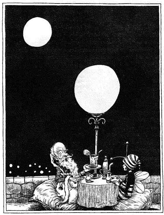 Они сидели вдвоем за круглым столиком, на котором стояла гигантская лампа на длинной медной ножке, высокий чайник, две маленькие чашки и ржавая консервная банка. В небе светила огромная полная луна, и повсюду вокруг, на всех крышах Доралакии, горели лампы, образуя загадочное созвездие, спускающееся к симпатичной гавани в самом низу города.