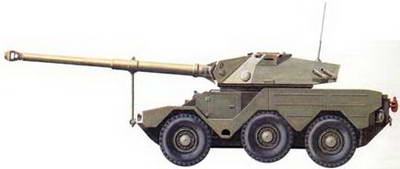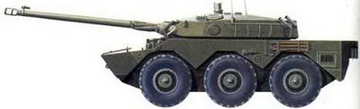 AMX-10RC обладает двумя недостатками – она очень дорога в производстве (превышает стоимость некоторых основных боевых танков) и слишком сложна в эксплуатации. По этим причинам заказ французской армии был сокращен до 337 машин, а на экспорт машина поставлялась лишь в Марокко (108) и Катар (12). AMX-10RC принимала участие в боевых действиях в Чаде и Ираке (операция «Буря в пустыне»). В настоящее время производство этих машин прекращено, а планировавшиеся программы модернизации свернуты – ограничились установкой некоторых элементов автоматизированной системы боевого управления и усовершенствованного И К прицела. AMX-10RC имеет полностью сварные корпус и башню, выполненные из алюминиевого сплава. Меха ник-водитель располагается в носовой части корпуса слева, моторно-транс– миссионное отделение – в кормовой части, а башня установлена в середине корпуса. Гидропневматическая подвеска (колесная формула 6x6) обеспечивает возможность изменения клиренса и крена в зависимости от дорожных условий. В конструкции машины использовано много узлов и агрегатов, включая двигатель и трансмиссию, от гусеничной БМП АМХ– 10Р. Водные преграды АМХ– 10RC преодолевает вплавь с помощью двух водометов со скоростью до 7,2 км/ч.
