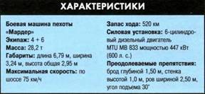 «Мардер»стала первой БМП стран западного мира. Она оснащена двухместной башней, на которой установлены 20-мм пушка и 7,62-мм пулемет. На экспорт эта машина не поставлялась.
