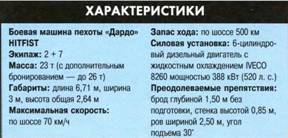 Тогда же было принято решение взять шасси VCC-80 за основу при создании новой БМП, обладающей большей огневой мощностью за счет установки на ней в дополнение к пушке и пулемету противотанкового ракетного комплекса TOW. В конце 1988 года консорциум IVECO– Oto получил заказ на 200 БМП «Дардо», в число которых входила базовая модель с двухместной башней (25-мм пушка и спаренный с ней 7,62-мм пулемет) и четыре специализированные версии машины (самоходные противотанковый ракетный комплекс и 120-мм миномет, командно-штабная и санитарная машины). Противотанковая версия имеет две однотрубные пусковые установки управляемых ракет TOW, расположенные побор– тно, и возможность установки системы управления огнем HITFIST компании «Галилео авионика» в качестве альтернативы комбинированному дневному и ночному прицелам фирмы «Коллсман», поставляемым в сухопутные войска Италии. Вариант с итальянской системой получил название «Дардо» HITFIST