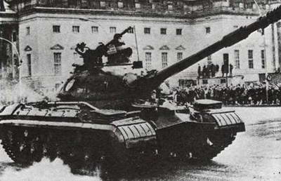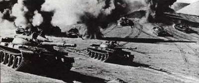 Советские Т-62 в ходе учений отрабатывают атаку в условиях плотного заградительного артиллерийского огня. В реальном бою такие танки впервые участвовали на Ближнем Востоке.