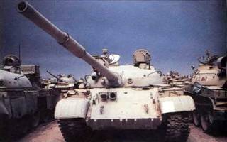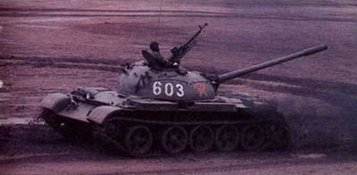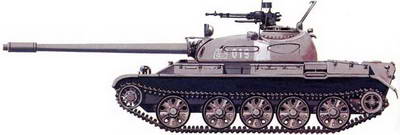 Китайский Т-54 с развернутой назад башней. В люке виден заряжающий, перед ним – зенитный пулемет ДШКМ калибра 12,7 мм. Танк был оборудован системой дымопуска из выхлопного патрубка.