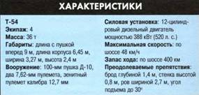 Корпус Т-54 был разделен на три отделения – механика– водителя, боевое и моторнотрансмиссионное. Механик– водитель размещался в передней части корпуса слева, он же вел стрельбу из 7,62-мм курсового пулемета, установленного справа (кнопка спуска была установлена на правом рычаге управления). В башне находились места трех членов экипажа – командира и наводчика слева от казенной части пушки, заряжающего справа от нее. Башня была литой, однако ее верхняя часть с люками – сварной. Слабым местом конструкции Т-54 являлись двигатель и трансмиссия, которые нередко выходили из строя.