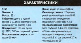 Боекомплект 100-мм пушки Д-10Т2С составлял 37 выстрелов. Впоследствии вернулись к зенитным пулеметам калибра 12,7 мм – такие танки получили обозначение Т-55(М). Последняя серийная модификация – Т-55А – была представлена в 1963 году и отличалась тем, что в ней был установлен новый спаренный пулемет ПКТ калибра 7,62 мм, вместо курсового пулемета установили дополнительный стеллаж (это позволило увеличить боекомплект пушки до 43 снарядов). Были внесены и некоторые другие дополнения (например, внутреннее пространство было обито специальным противорадиационным покрытием). Танк Т-55А с зенитным пулеметом получил обозначение Т-55А(М). Т-55 и в настоящее время остается на вооружении армий многих стран мира. На базе этого танка были созданы многочисленные специальные бронемашины.