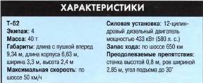 Танк Т-62 был создан на базе Т-54/55 и имел немного удлиненный корпус. В видоизмененной башне была установлена гладкоствольная пушка калибра 115 мм. Производство началось в 1962 году, завершилось в 1975-м, за этот период было выпущено около 20 000 танков этого типа. Выпуск Т-62 был также налажен в Чехословакии (в основном на экспорт) и в КНДР. Т-62 оказался весьма дорогим, и поэтому выпуск был прекращен, хотя его предшественник Т-55 еще оставался в производстве и после 1975 года. Пушка У-5СТ (известна также как 2А20) имела эжекционное устройство и систему стабилизации в двух плоскостях. Примечательным новшеством, внедренным в Т-62, явилась система автоматической экстракции стреляных гильз. После выстрела орудие автоматически занимало положение +3,5° и гильза выбрасывалась через специальный лючок в кормовой части башни. Недостатком системы стала снизившаяся до четырех выстрелов в минуту максимальная скорострельность пушки.