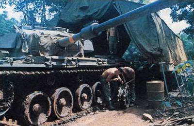 Вверху. Самым массовым танком, состоявшим на вооружении американских войск во Вьетнаме, стал М48АЗ. Благодаря своей сравнительно небольшой массе он лучше других подходил для использования на мягком грунте.