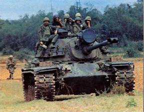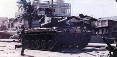 М48 в ходе боев на улицах Сайгона в мае 1968 года. Танки М48 активно применялись во многих операциях, проводившихся в ходе войны во Вьетнаме.