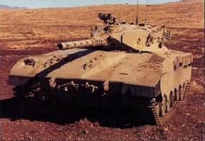 Израильский танк «Меркава» Mk 1 вооружен такой же 105-мм пушкой, что и американские М48А5 и М60. Боевое крещение танк принял в 1982 году в Ливане. В кормовом отделении корпуса могут размещаться десантники, раненые на носилках или дополнительные боеприпасы.